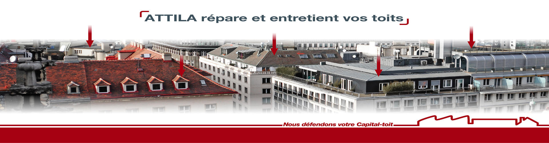 Grâce à un concept innovant et éprouvé, ATTILA pérennise et valorise les toitures par la « Défense du Capital-toit » de ses clients. Pour cela, ATTILA s’appuie sur 5 univers de services : mesures conservatoires, diagnostic, réparation, entretien et améliorations.